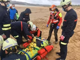 Un hombre de 86 años, vecino de Santander, ha sufrido este domingo un traumatismo en la cabeza tras caer del caballo en el montaba en la playa de Valdearenas, en Liencres (Piélagos), de donde ha tenido que ser evacuado en el helicóptero del Gobierno de Cantabria para su posterior traslado al Hospital Universitario Marqués de Valdecilla.