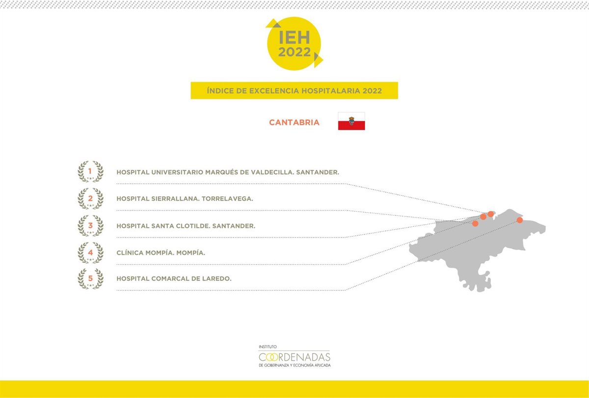 En 2022, el Hospital Valdecilla se consolida en la primera posición del ranking regional cántabro, al situarse a la cabeza del top 5 de los hospitales de la comunidad. El Hospital de Sierrallana en Torrelavega repite, una edición más, en la segunda posición.