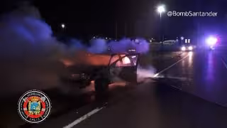 Un coche se ha incendiado esta madrugada junto a la gasolinera de Mompía, en Santa Cruz de Bezana, sin que se hayan producido daños personales.