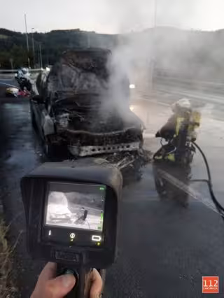 Un vehículo se incendió anoche cuando circulaba por la Autovía del Cantábrico A-8 a la altura de la salida de la localidad cántabra de Ambrosero.