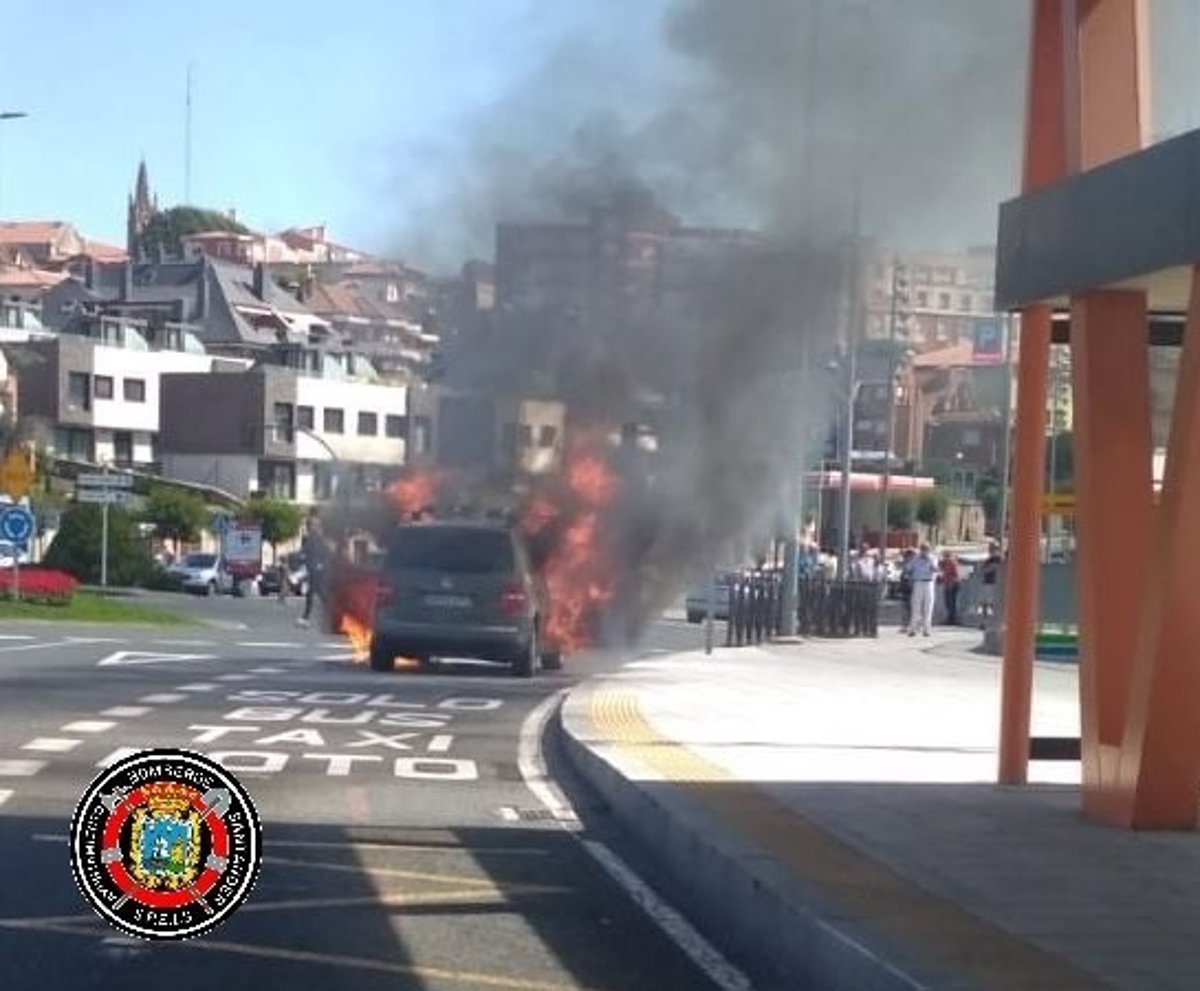 Un vehículo se ha incendiado este mediodía en el intercambiador de Valdecilla, en Santander.
