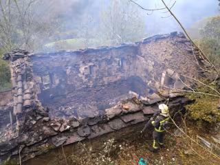La cabaña, de dos alturas y unos 60 metros cuadrados por planta, ha quedado completamente afectada manteniendo en pie únicamente las cuatro paredes de piedra.