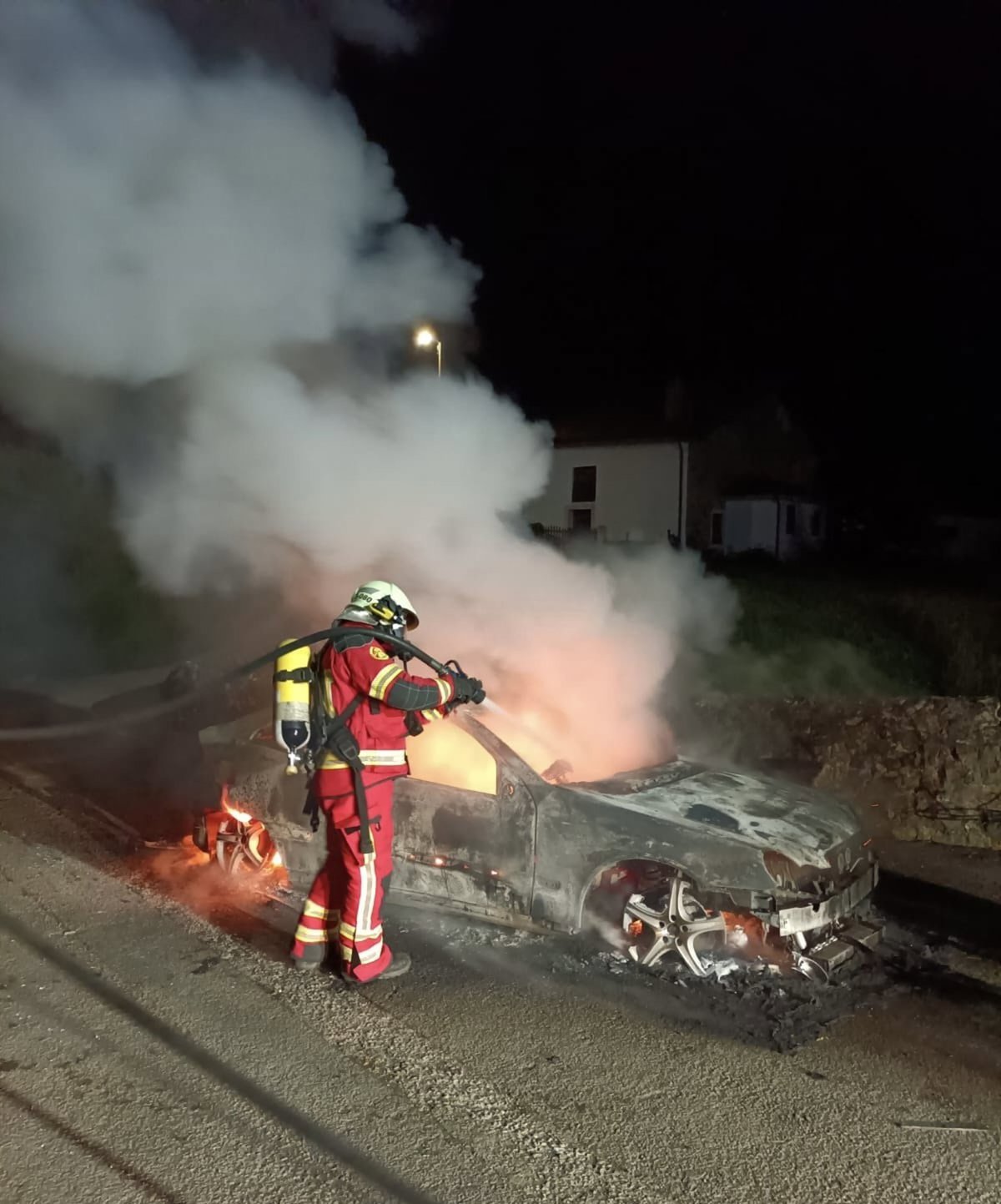 Un incendio ha calcinado esta noche un coche en la localidad de Soto de Iruz, en el municipio de Corvera de Toranzo.