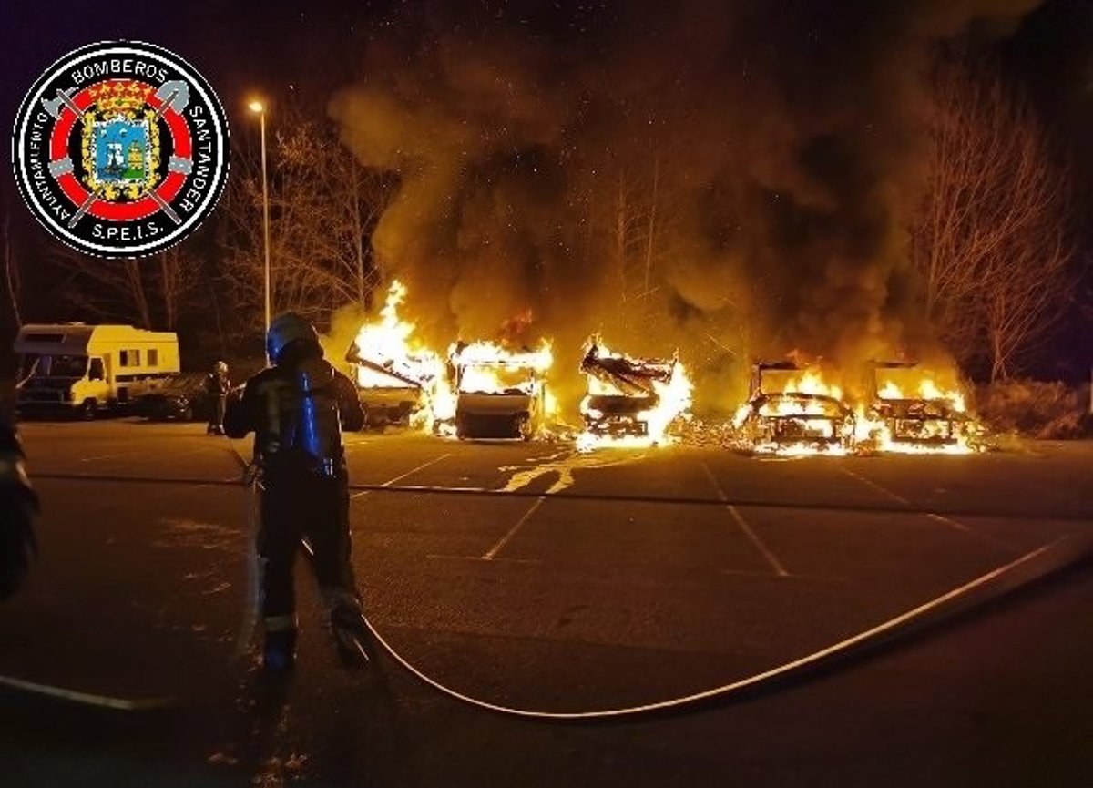 Un incendio calcina varias autocaravanas en un aparcamiento del polígono de Morero - BOMBEROS DE SANTANDER