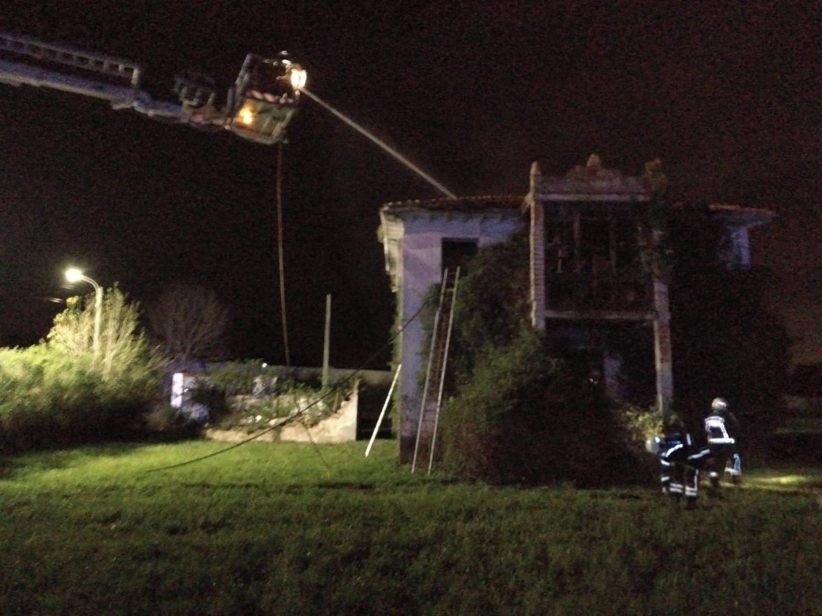 Un incendio ha calcinado esta madrugada una vivienda deshabitada en Sarón (Santa María de Cayón). La edificación, de gran tamaño, se encontraba en estado de ruina y se ha visto completamente afectada por las llamas.