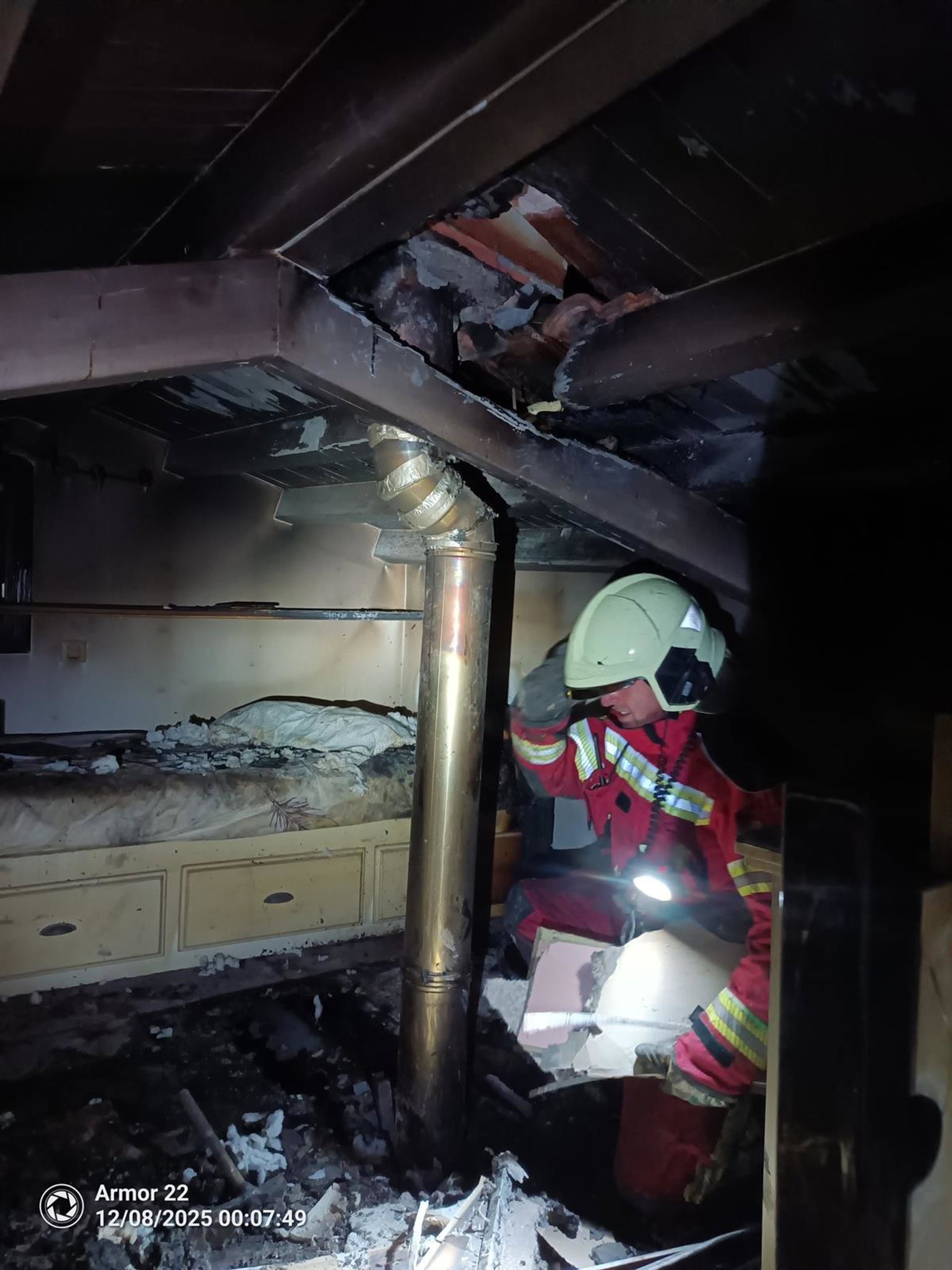 Bomberos del Gobierno de Cantabria en la vivienda afectada por el fuego de una chimenea - 112 CANTABRIA