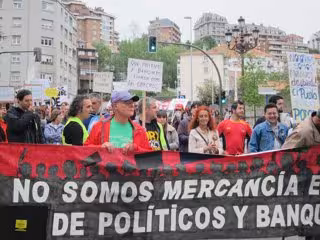 La manifestación de esta tarde ha partido pasadas las 18.00 horas de la rotonda de La Sardinera, en Tetuán, encabezada por una pancarta que resumía precisamente esta queja: 'No somos mercancías en manos de políticos y banqueros'.