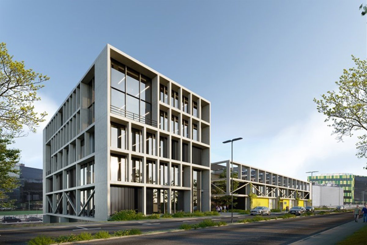 El edificio de los talleres de experimentación tendrá seis grandes espacios de 9 metros de altura destinados al desarrollo de los prototipos y plantas piloto, con acceso desde el vial y un espacio libre para funcionar como muelle de carga y descarga.