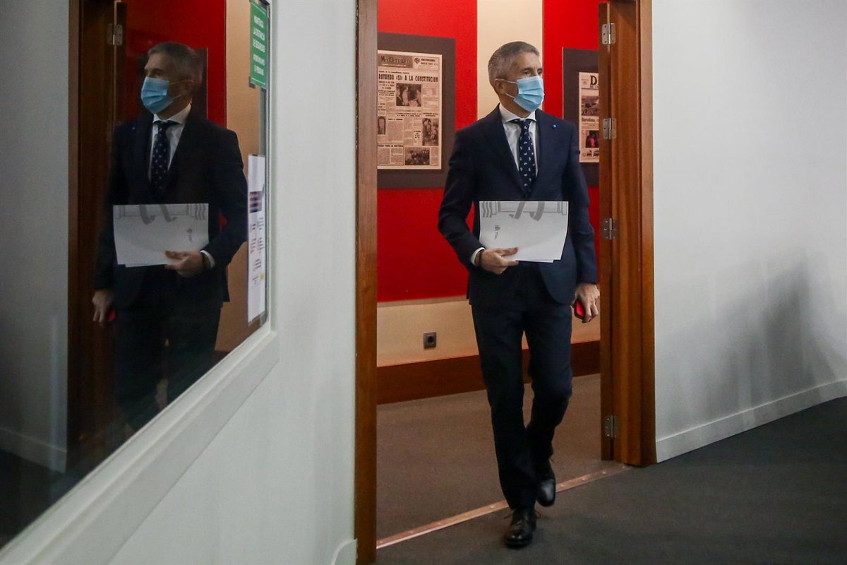El ministro del Interior, Fernando Grande-Marlaska, a su llegada a una rueda de prensa en Madrid por el temporal Filomena - EUROPA PRESS/R.Rubio.POOL - Europa Press