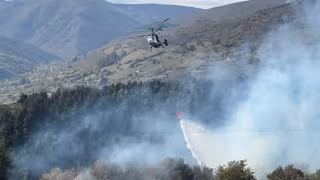 Archivo - Un helicóptero trata de apagar el incendio forestal en Arenas de Iguña en foto de archivo - EUROPA PRESS - Archivo