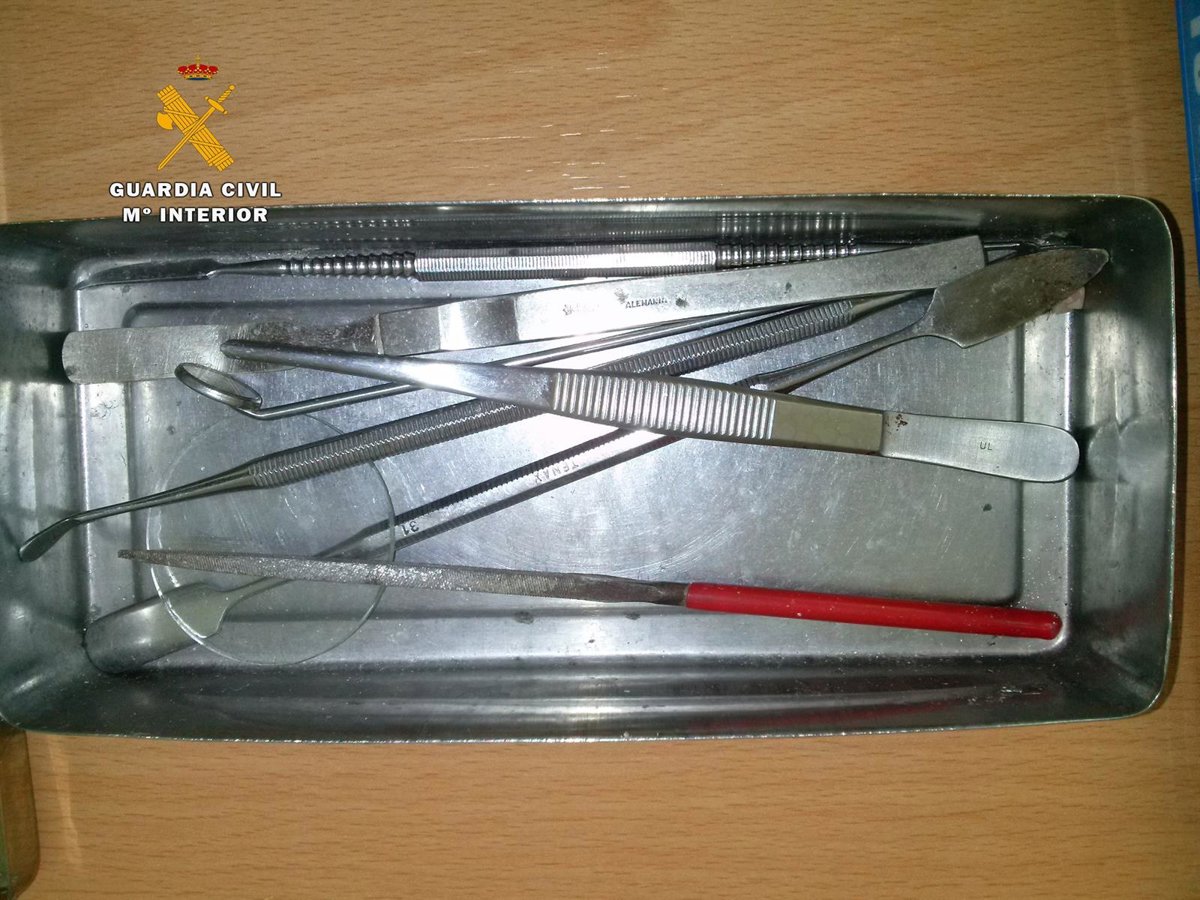 Los agentes le intervinieron una mochila con diferente material e instrumental para realizar trabajos propios de dentista. Por el momento, a la Guardia Civil no le consta que haya realizado los trabajos que ofertaba.