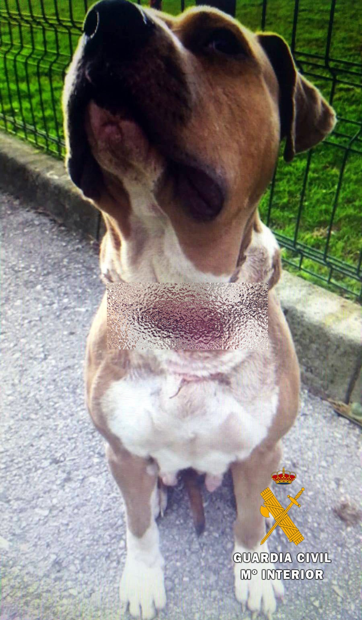 Fuentes de la Guardia Civil han informado hoy que se trata de una perra de raza 'American Staffordshire' de dos años de edad, que presenta una delgadez extrema y una herida en el cuello totalmente infectada, con pérdida de tejido y por la que se puede observar las arterias principales, según el informe veterinario.