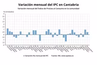 De este modo, en lo que va de año, los precios se han incrementado un punto en Cantabria, impulsados por el transporte (5,4%) y el vestido y calzado (3,5%), y con todos los sectores con subidas, excepto la vivienda (-4,3%) y el ocio y la cultura (-2,4%).