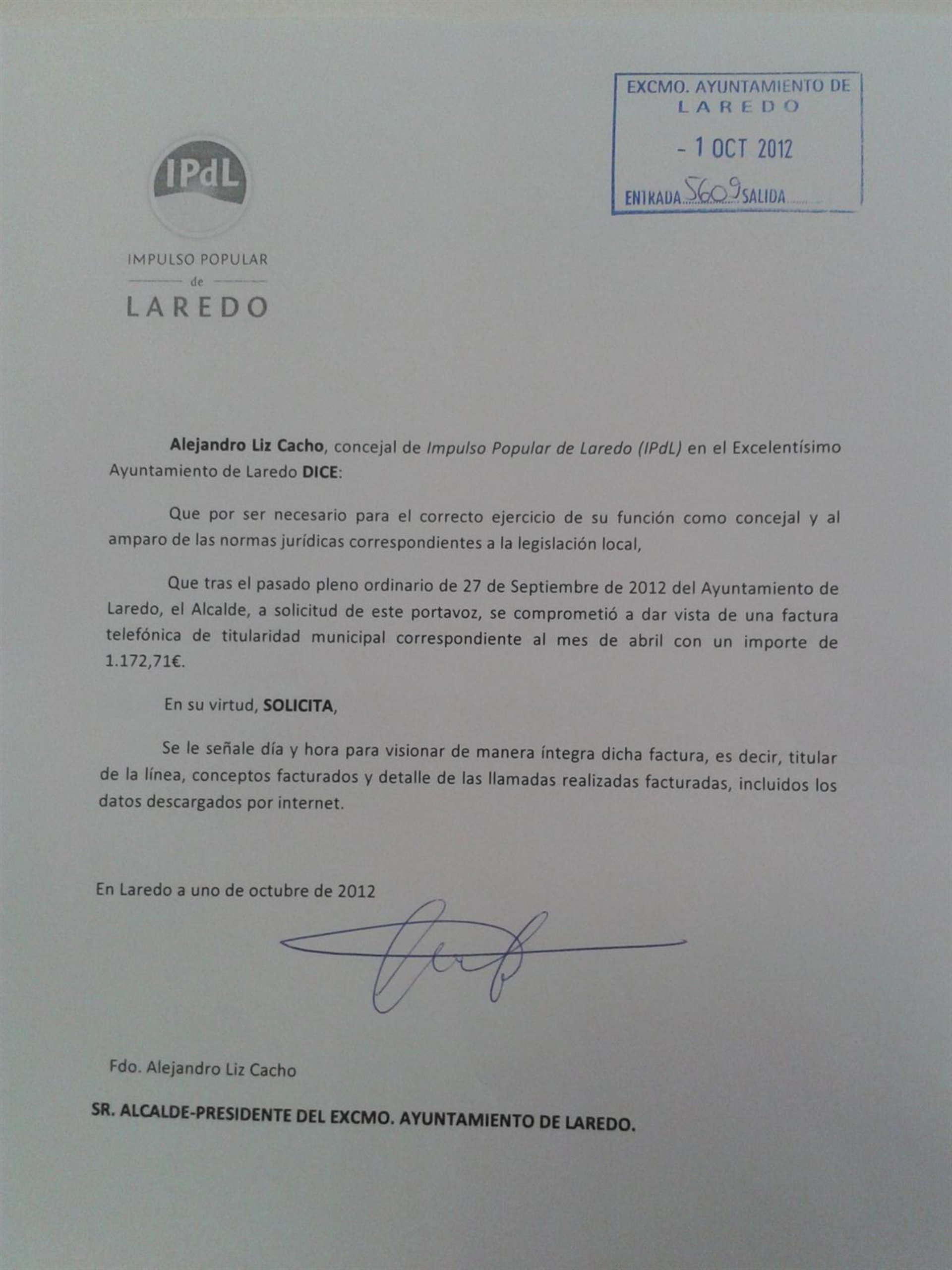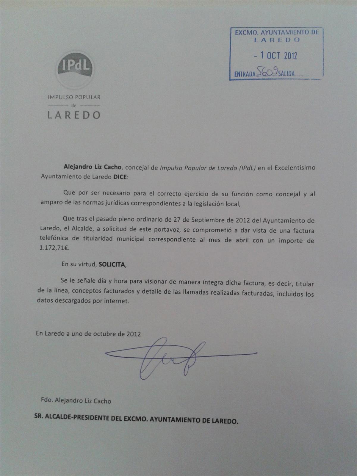 Impulso Popular de Laredo (IPdL) acudirá a los tribunales de justicia si el alcalde, Ángel Vega, oculta información sobre la "escandalosa" factura de casi 1.200 euros de un terminal móvil municipal.