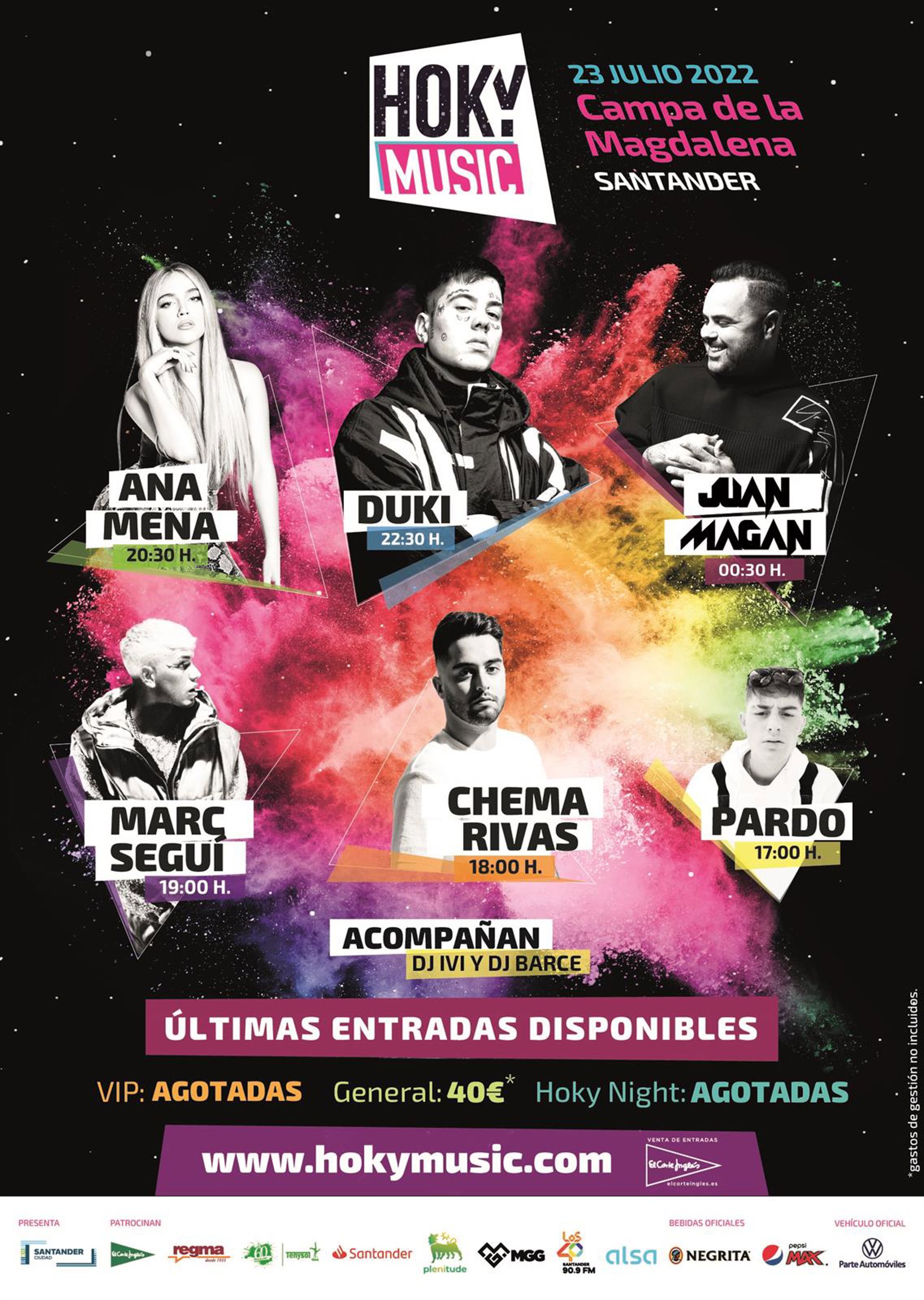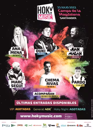 Los cantantes Juan Magán, Duki, Ana Mena, Marc Seguí, Chema Rivas y el cántabro Pardo, protagonizarán este sábado, 23 de julio, una nueva edición del festival Hoky Music, que se celebra en la Campa de La Magdalena de Santander coincidiendo con las fiestas de la Semana Grande tras dos años de parón a causa de la pandemia.