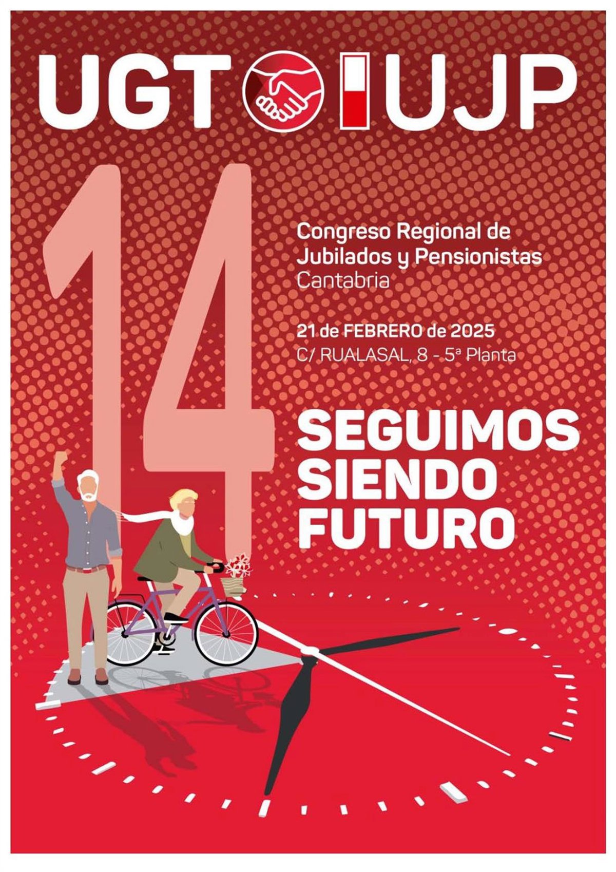 La Unión de Jubilados y Pensionistas (UJP) de UGT celebrará este viernes 21 de febrero su 14º Congreso Regional en Cantabria con el lema 'Seguimos siendo futuro', que se celebrará íntegramente en el Salón de Actos Bruno Alonso de la sede del sindicato en Santander.