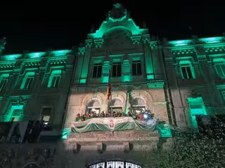 Pocos minutos después de entrar en el Ayuntamiento, la plantilla, el presidente y el entrenador, Iván Ania, han salido al balcón de la Casa Consistorial para celebrar el ascenso con la afición que abarrotaba la Plaza.
