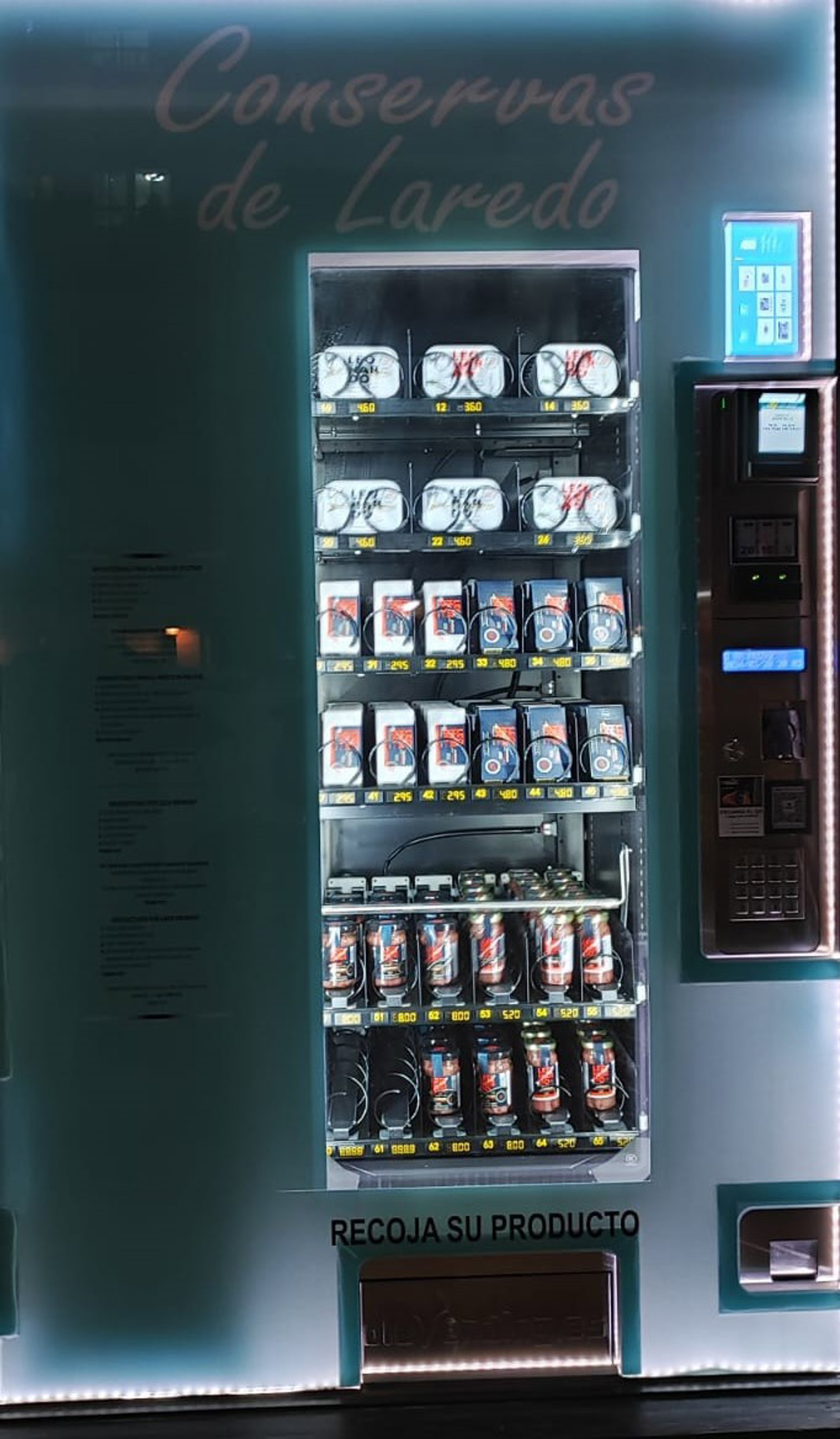La máquina instalada en el Ever Vending Laredo ofrece las anchoas del Cantábrico hechas a mano de manera tradicional en latas y botes de cristal de varios formatos y tamaños, así como boquerones en vinagre.