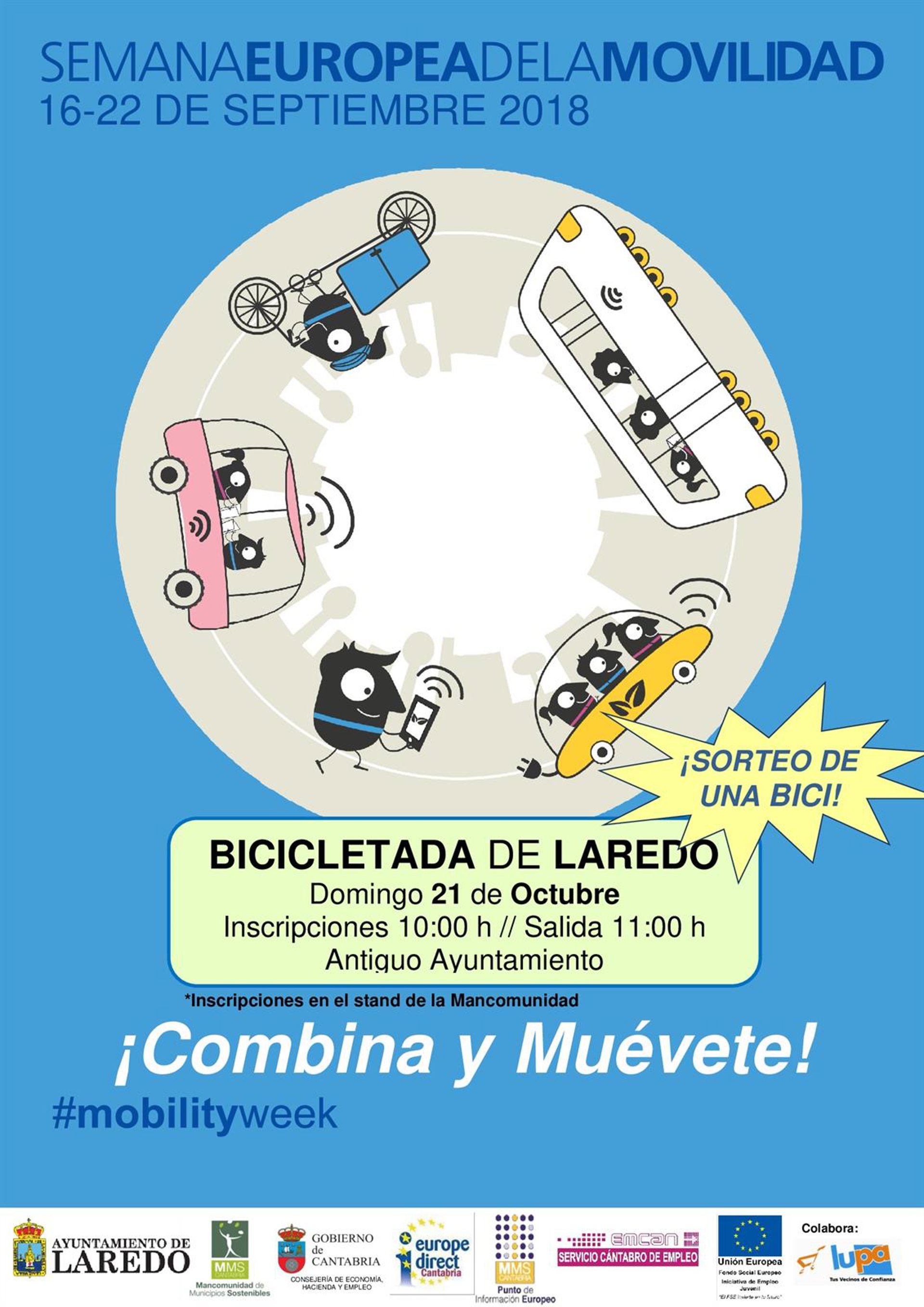 La 'Bicicletada' está organizada por el Ayuntamiento de Laredo, la Mancomunidad de Municipios Sostenibles de Cantabria, la Consejería de Economía, Hacienda y Empleo del Gobierno de Cantabria, Europe Direct Cantabria, el Punto de Información Europeo de la MMS, el Servicio Cántabro de Empleo y, el Fondo Social Europeo, Iniciativa de Empleo Juvenil de la Unión Europea y, cuenta con el apoyo de empresas colaboradoras.