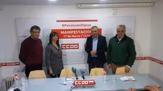 La manifestación en defensa de las pensiones, que coincidirá con 150 movilizaciones convocadas estos días en todo el país, ha sido presentada este jueves en una rueda de prensa ofrecida por el secretario general de CCOO en Cantabria, Carlos Sánchez, y el secretario general de la Federación de Pensionistas Jubilados de este sindicato, José Antonio Calderón; así como por el secretario general de la Unión de Pensionistas y Jubilados de UGT en la región, Higinio Martínez, y la secretaria para la Igualdad y Protección Social de la formación, Asunción Villalba.