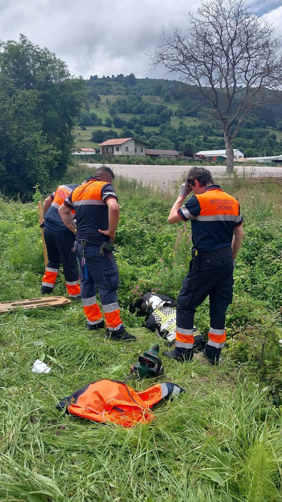 El dispositivo de búsqueda ha localizado con vida al hombre de 80 años que desapareció en San Martín de Toranzo ayer, en una zona de maleza dentro del recinto de Maderas José Sainz donde se había caído.