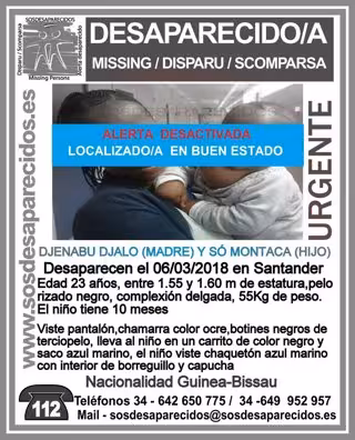 La joven de 23 años natural de Guinea-Bissau que despareció el 6 de marzo en Santander junto a su hijo de 10 meses de edad, que había sido tratado de un tumor en el cuello en el Hospital Marqués de Valdecilla, han sido localizados en buen estado de salud en Pamplona.