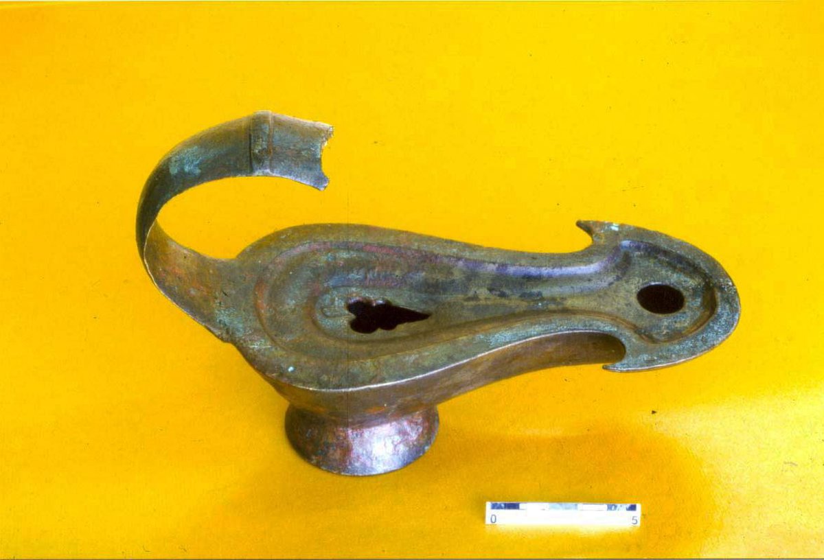 Esta especie de lámpara encontrada en la localidad cántabra debió realizarse en la segunda mitad del siglo I, en época flavia, teniendo en cuenta que se trata de una pieza de origen itálico que llegaría a la región de manos de los pobladores de Flaviobriga.