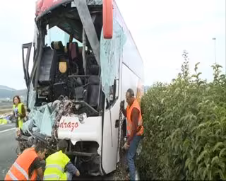 En el autobús viajaba un grupo de jubilados que iban de excursión al País Vasco, mientras que el camión transportaba productos congelados.