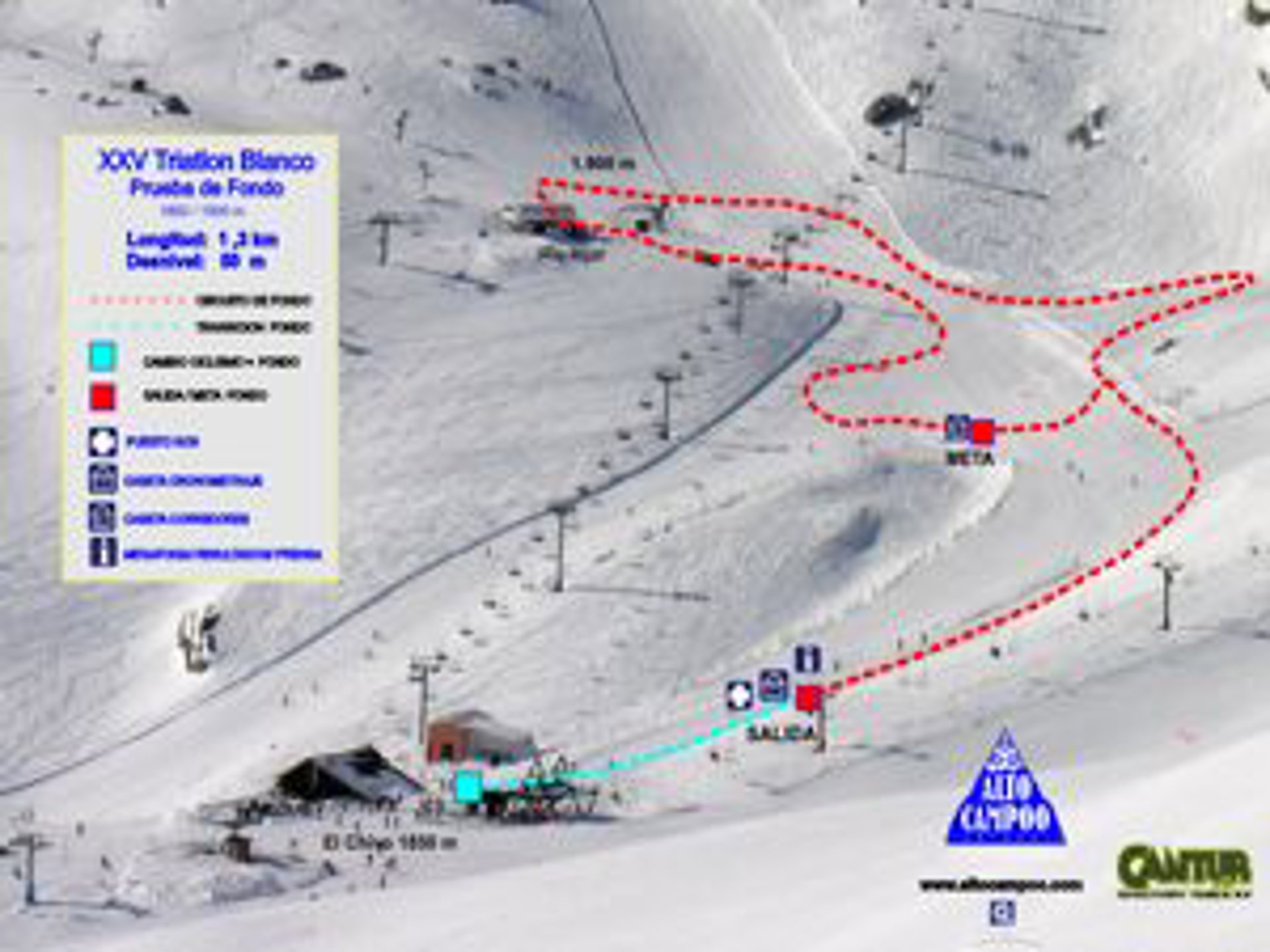 Al finalizar se realiza el cambio de disciplina en la Plaza de España para comenzar con la subida a la Estación Invernal de Brañavieja y la Fuente del Chivo completando más de veintisiete kilómetros de distancia. Allí es donde comienza la modalidad de esquí de fondo que se completa tras realizar los diez kilómetros.