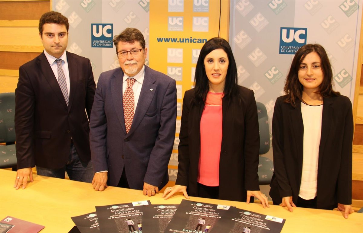 El vicerrector de Investigación y Transferencia del Conocimiento de la UC, Javier León, acompañado por la directora de Economía y Asuntos Europeos del Gobierno de Cantabria, Montserrat García; el concejal de Educación del Ayuntamiento de Santander, Daniel Portilla; y la coordinadora de la Unidad de Cultura Científica y de la Innovación (UCC+i) de la UC, Beatriz Salas, han presentado este lunes en rueda de prensa la nueva edición de esta cita.