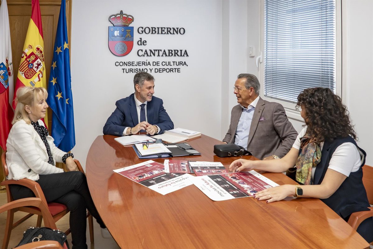 El consejero de Cultura, Luis Martínez Abad, con representantes del grupo Bárymont - GOBIERNO DE CANTABRIA