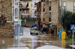 Un vehículo de policía circula por una vía inundada de Ampuero.- Archivo - Juan Manuel Serrano Arce - Europa Press
