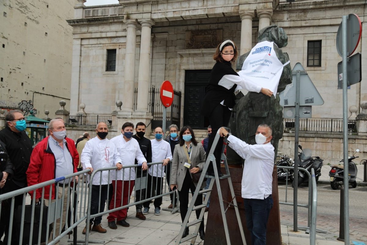 La iniciativa impulsada por el Ayuntamiento de Santander, la Federación de Asociaciones de Cocineros y Reposteros de España (FACYRE), en colaboración con MAKRO, y diferentes chefs locales, ha consistido en la imposición de un delantal como gesto de reconocimiento a uno de los sectores más afectados por la crisis económica derivada de la pandemia por coronavirus.