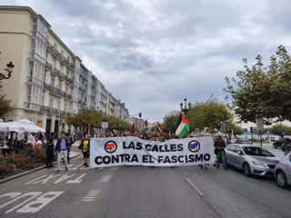 La marcha ha partido de la rotonda de Puertochico pasadas las 18.00 horas y ha recorrido las principales calles de la ciudad hasta Cuatro Caminos, presidida por una gran pancarta en la que se ha podido leer 'Las calles contra el fascismo'. Los asistentes también ha portado banderas de Palestina. Ha concluido con la lectura de un manifiesto.