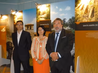 El alcalde de Laredo, Juan Ramón López Visitación, junto a su homólogo de Valderredible, Fernando Fernández, y la directora general de Turismo del Gobierno de Cantabria, Eva Bartolomé, han inaugurado este martes la muestra.