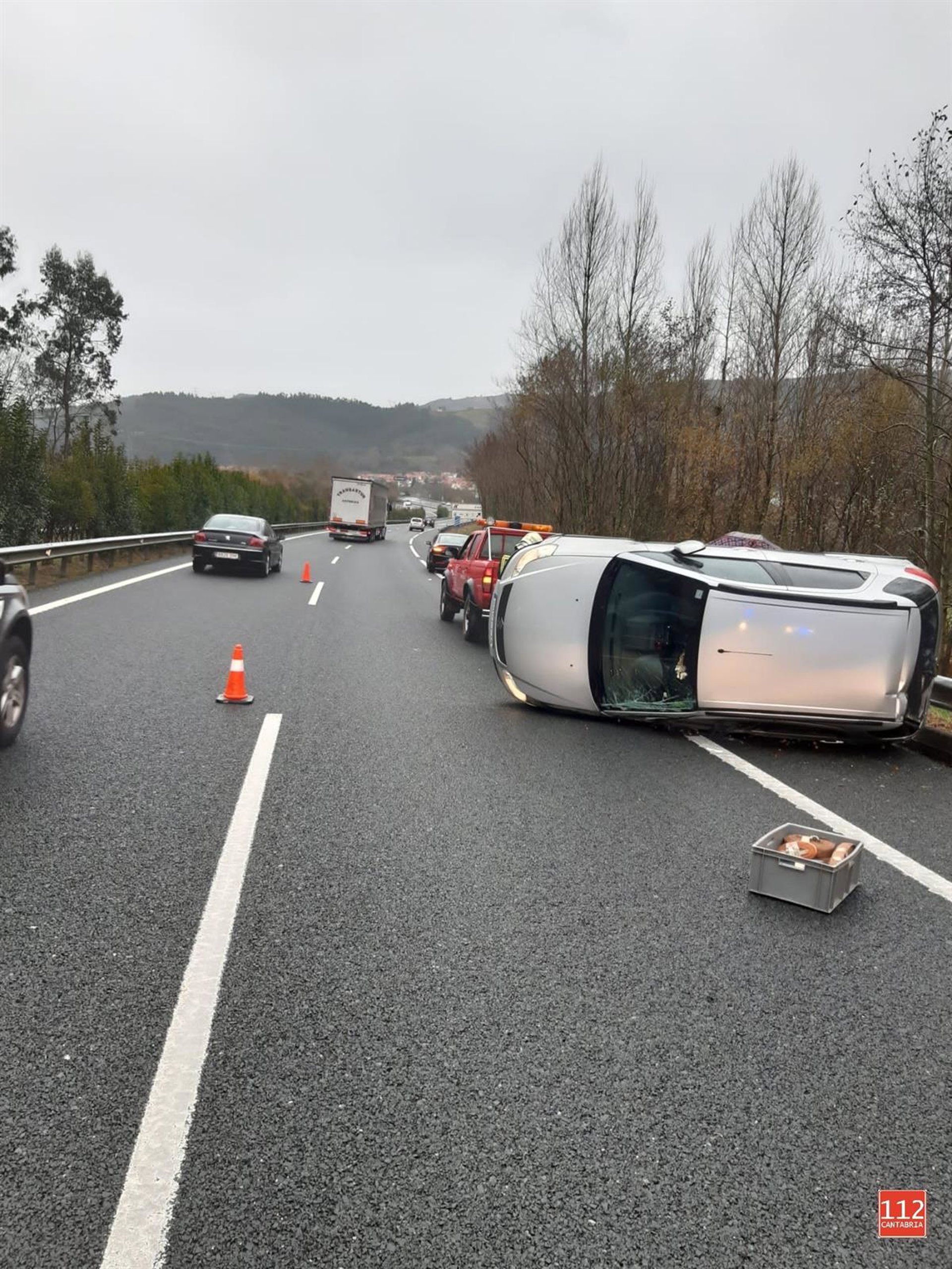 Una mujer, de 56 años y vecina de Bilbao, ha resultado herida leve al volcar el vehículo que conducía e la A-8, en el punto kilométrico 244, sentido Oviedo, a 300 metros de la salida de Virgen de la Peña (Cabezón de la Sal).