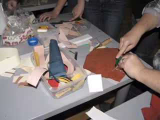 Los alumnos han realizado pequeños libros cortando, pegando, cosiendo distintos materiales, cuero, papel, fotografías y ayudados con útiles de artesano han realizado esas pequeñas obras de arte en formato libro.