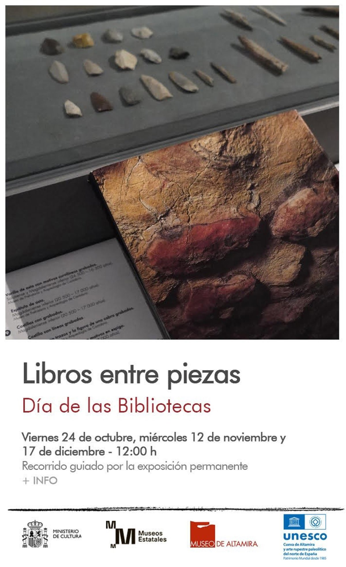 El Museo Nacional y Centro de Investigación de Altamira, dependiente del Ministerio de Cultura, prepara un fin de semana en el que los libros serán los protagonistas con motivo de la celebración del Día de las Bibliotecas y que tiene como propuesta principal la intervención 'Libros entre piezas' en la exposición permanente.