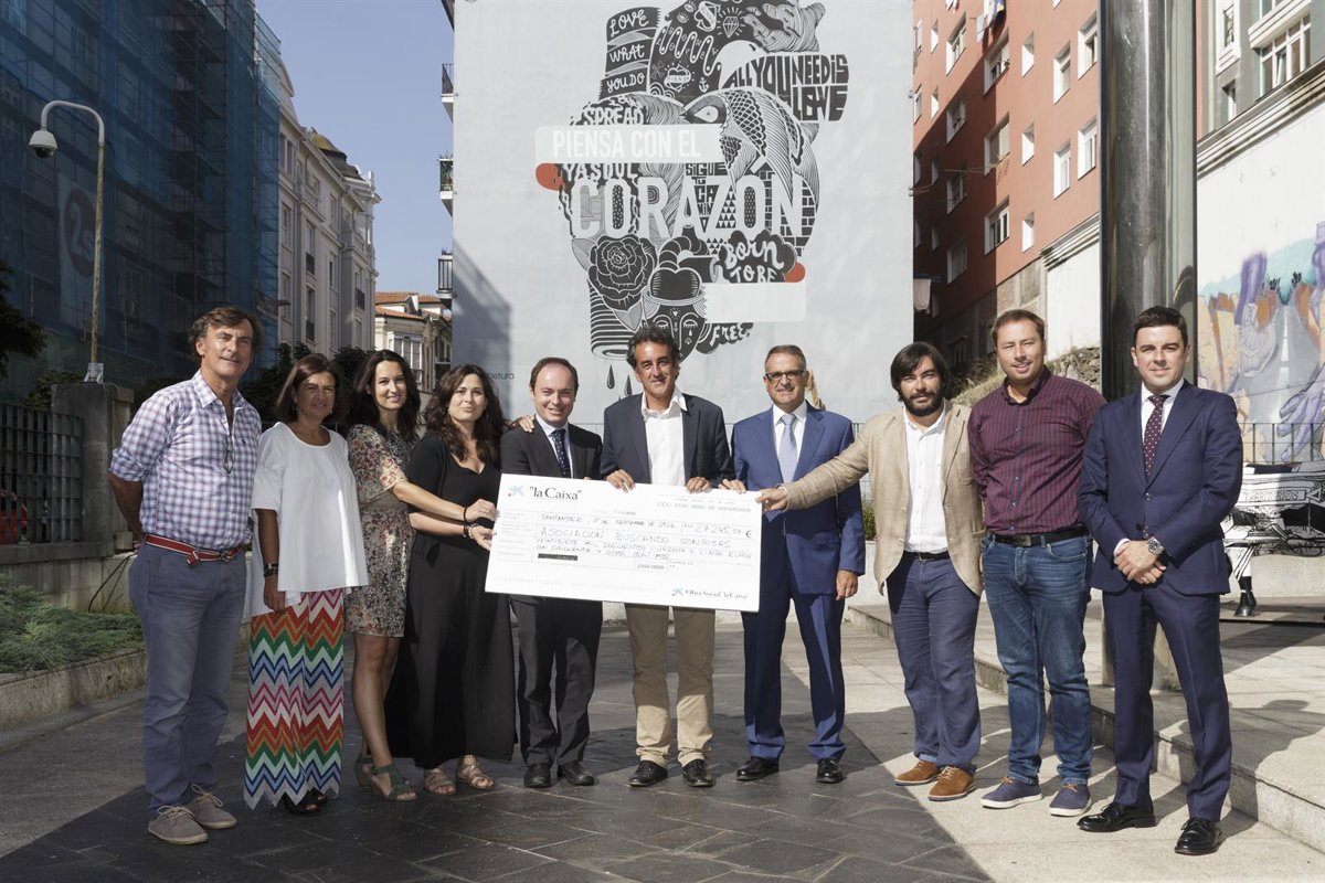 El presidente de Buscando Sonrisas, Ignacio Quijano, ha recibido el cheque de manos de Miriam Díaz, concejala de Cultura del Ayuntamiento de Santander; de Francisco Martín, consejero de Turismo; de Jorge Gutiérrez, director general de Juventud y Cooperación al Desarrollo; de Juan F. González, director de Área de Negocio de Caixabank en Santander; de Pedro Irureta, director financiero de Bathco; de Elena Iglesias, responsable de Comunicación de Viesgo; de María Ortiz, responsable de Calidad de El Buen Pastor; y de Guillermo Vega, gerente de Mouro Producciones.