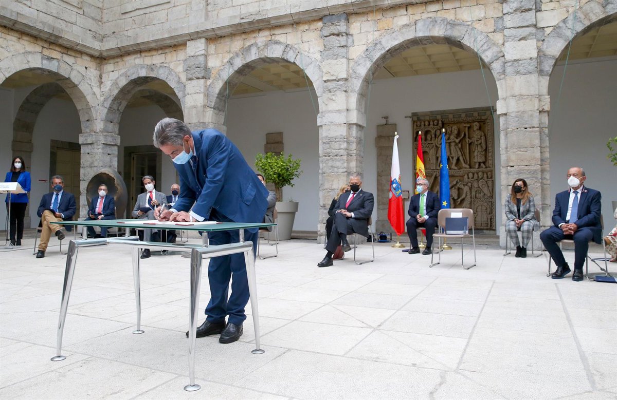 El acto de constitución de esta Alianza se ha celebrado en el patio del Parlamento de Cantabria, en el que los 17 firmantes han suscrito el documento de adhesión y en el que han intervenido Revilla; el consejero de Industria, Turismo, Innovación, Transporte y Comercio, Javier López Marcano, y el presidente de la Cámara regional, Joaquín Gómez.