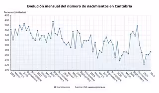 Evolución mensual de los nacimientos en Cantabria - EPDATA