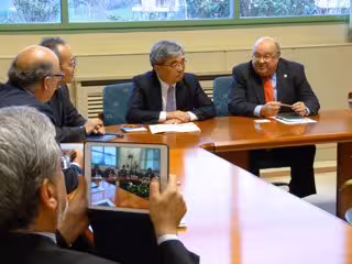 El rector de la Universidad de Cantabria, José Carlos Gómez Sal, ha mantenido este martes un encuentro con el vicepresidente ejecutivo de NEC Corporation, Tomonori Nishimura, y otros directivos de la multinacional. La visita tiene lugar en el marco de la reunión anual del Comité de Dirección de las divisiones geográficas de NEC (Rusia, Ucrania, Europa y Middle East) que se celebra en Santander para conocer los proyectos que NEC está realizando en Cantabria de la mano de sus socios locales en el ámbito de las ciudades inteligentes: Conceptual -start up de la Universidad-, Heritas, la UC,...