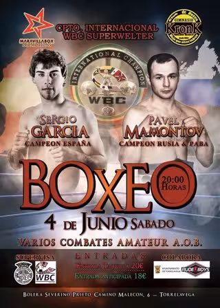 El protagonista será el torrelaveguense Sergio 'El niño' García, que imbatido con 21 victorias en su historial, tendrá enfrente al ruso Pavel Mamontov, que cuenta con 14 peleas -11 victorias, 1 derrota y 2 empates-.