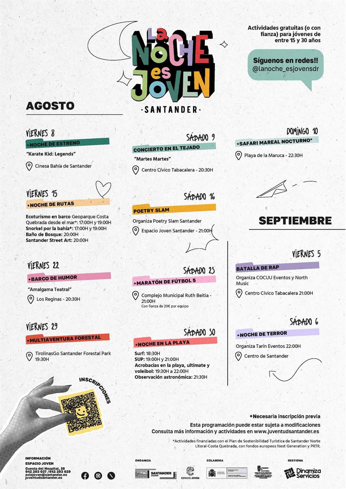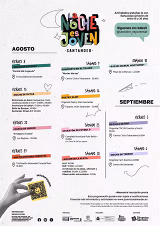 Todas las actividades serán de carácter gratuito y la mayoría requieren de inscripción previa (salvo actuaciones como el concierto, el Poetry Slam o el Rap) a través del enlace www.juventudsantander.es