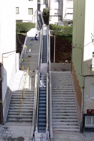 La instalación de escaleras mecánicas entre los diferentes bloques del grupo Santa Teresa, resuelve la comunicación entre las calles Santa Teresa y Prado de San Roque.