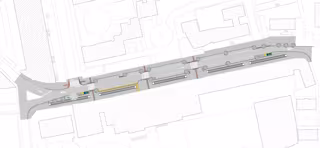 La nueva configuración de la calle mantendrá las aceras de ambos márgenes con anchuras similares a las actuales, adosando los elementos mecánicos a la acera Sur, desplazando la fila de aparcamientos en línea y disponiendo una banda de seguridad entre los vehículos aparcados y los elementos mecánicos.