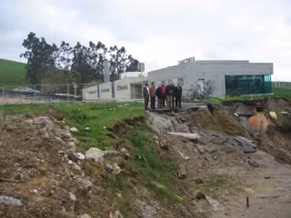 Según Urranca, el tanatorio no se ha visto afectado por este desprendimiento, ya que tiene su propia cimentación, aunque ha dejado cortado el vial que recorre el complejo y la depuradora de aguas residuales que drena la zona del tanatorio.