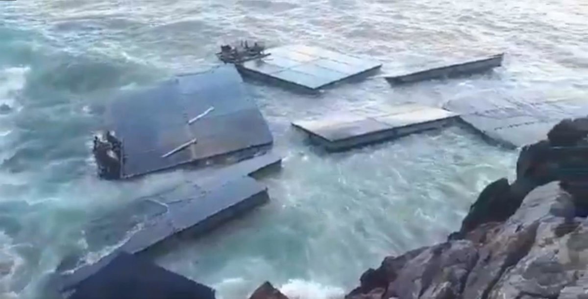 Durante un ejercicio de adiestramiento que se estaba desarrollando ayer, una de las plataformas que se estaban instalando se soltó por las fuertes olas dañando algunas embarcaciones, de las que el regimiento perdió el control y dejó a la deriva tras evacuarlas.
