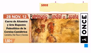 La ONCE dedica el cupón del 28 de noviembre a la Cueva de Altamira y el Arte Rupestre Paleolítico de la Cornisa Cantábrica, dentro de la serie que la organización dedica a los monumentos y lugares españoles que son Patrimonio Mundial de la UNESCO. Cinco millones de cupones llevarán esta joya del arte Paleolítico por toda España.