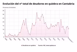 Evolución de los deudores en quiebra en Cantabria - EPDATA